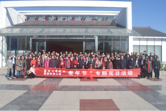 在全国第八个“老年节”来临之际,10月24日,离退休党工委组织全校离退休党员赴射阳中共华中工委纪念馆、洋马菊花园,开展“老年节”专题党日活动暨“我看脱贫攻坚新成就”参观活动。老领导徐仁权、王效文,新四军老战士我校离休老干部宋强以及140余位老同志参加了本次活动。