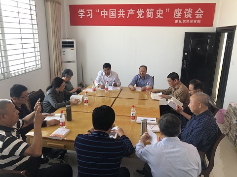 离退休党工委按照党史学习教育方案及党建工作总体部署,高质量开展党史学习教育,退休各支部高度重视、精心组织,通过自学、研讨、座谈等形式开展党史学习教育。5月28日下午,退休三支部在南校区“离退休干部党员之家”,开展《中国共产党简史》学习交流座谈会,会议由支部书记徐文宽同志主持。