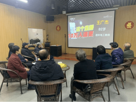 参会老同志认真学习习近平总书记在十四届全国人民代表大会第一次会议闭幕会上的重要讲话和政府工作报告内容。观看了致敬“银发知播”的视频,银发知播是借助互联网传授知识的退休教师,他们当中有两院院士、大学教授和中小学老教师。