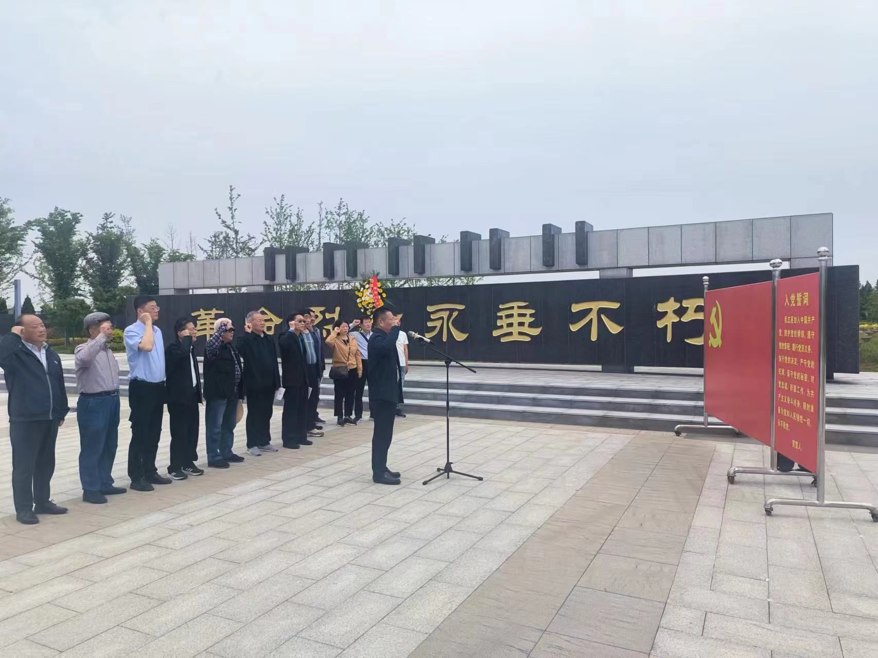 “我志愿加入中国共产党,拥护党的纲领,遵守党的章程……”在五条岭烈士陵园碑前,全体党员列队肃立,面向庄严的党旗高举右手,在左元斌的带领下,重温入党誓词,重忆入党初心,响亮而坚定的声音,让在场的每一位党员再次接受了深刻的党性教育和灵魂洗礼。