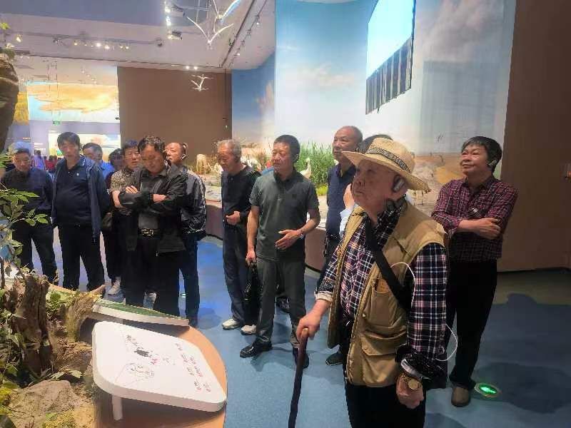 活动伊始,老党员们来到盐城黄渤海湿地博物馆。该博物馆由老火车站改建而成,建筑面积约16000平方米 ,通过场景模拟、沙盘模型、各类标本、多媒体互动等形式,全方位展示了黄海湿地生态空间、416种鸟类信息及迁徙轨迹,以及盐城在湿地保护方面做出的努力。老党员们漫步其中,认真聆听讲解,不时驻足交流,对家乡独特的生态环境有了更深刻的认识,也为盐城在生态保护方面取得的成就感到自豪。