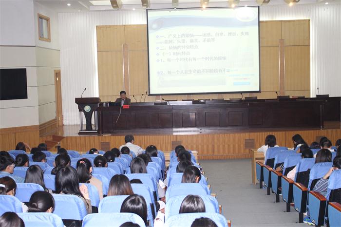 10月21日下午,在北校区图书馆报告厅,王铁教授应邀为学院2015级新生作题为《如何面对个人成长过程中的烦恼》的专题报告。院党总支书记顾志兰主持报告会,副书记周旺基,学生科、分团委负责人,全院各教学班级的班委,本学年度获得国家助学金、国家励志奖学金的学生共计300余人参加报告会。