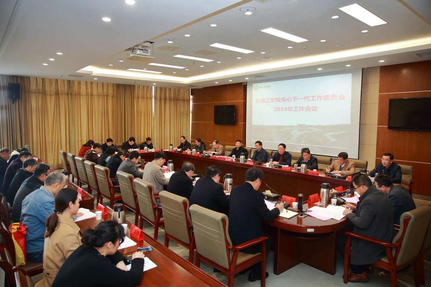 3月26日下午,学校在南校区行政楼9楼视频会议室召开了2019年关工委工作会议。校党委副书记、关工委主任薛浩,校关工委副主任朱友岗、徐报喜、周瑞明、闻建平、马汝伟,学生处、团委主要负责人,二级关工委主任、常务副主任出席会议。会议由校关工委办公室主任沈洪涛主持。
