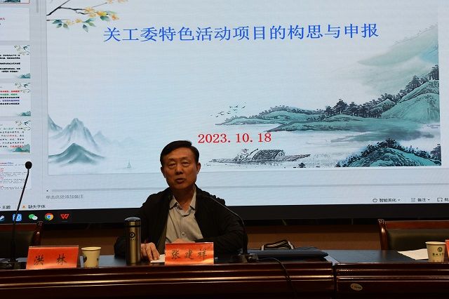 张建祥就《二级学院开展关工委优质化建设自查、自评的具体要求和注意事项》作专题辅导。他就如何撰写自查报告、如何准备自评材料、如何开展下一步的考核进行了详细讲解和说明。