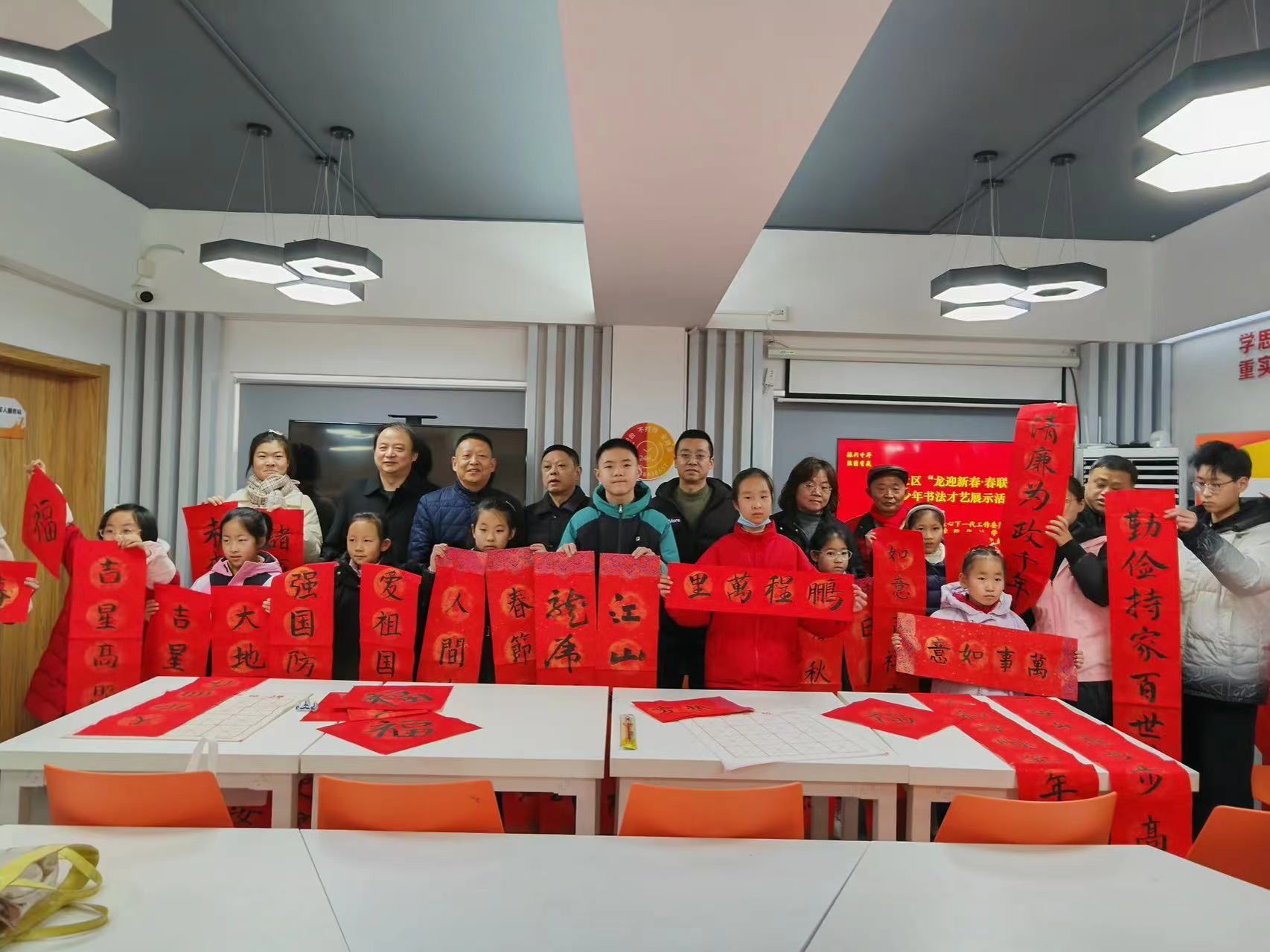 新春将至,为弘扬中华优秀传统文化,围绕“振兴中华,强国有我”的主题, 2月2日上午,校关工委、土木学院、优培学院、离退休第五党支部联合黄海街道南苑社区关工委举办“家校共建 同心育人”——社区青少年心理健康教育和“龙迎新春 春联入户”——社区青少年书法才艺展示活动。校关工委副主任、离退休第五党支部书记左元斌,土木学院党委副书记陈广正,优培学院关工委常务副主任范大和、学工办主任李凤芹,南苑社区党委书记王爱军等参加活动。