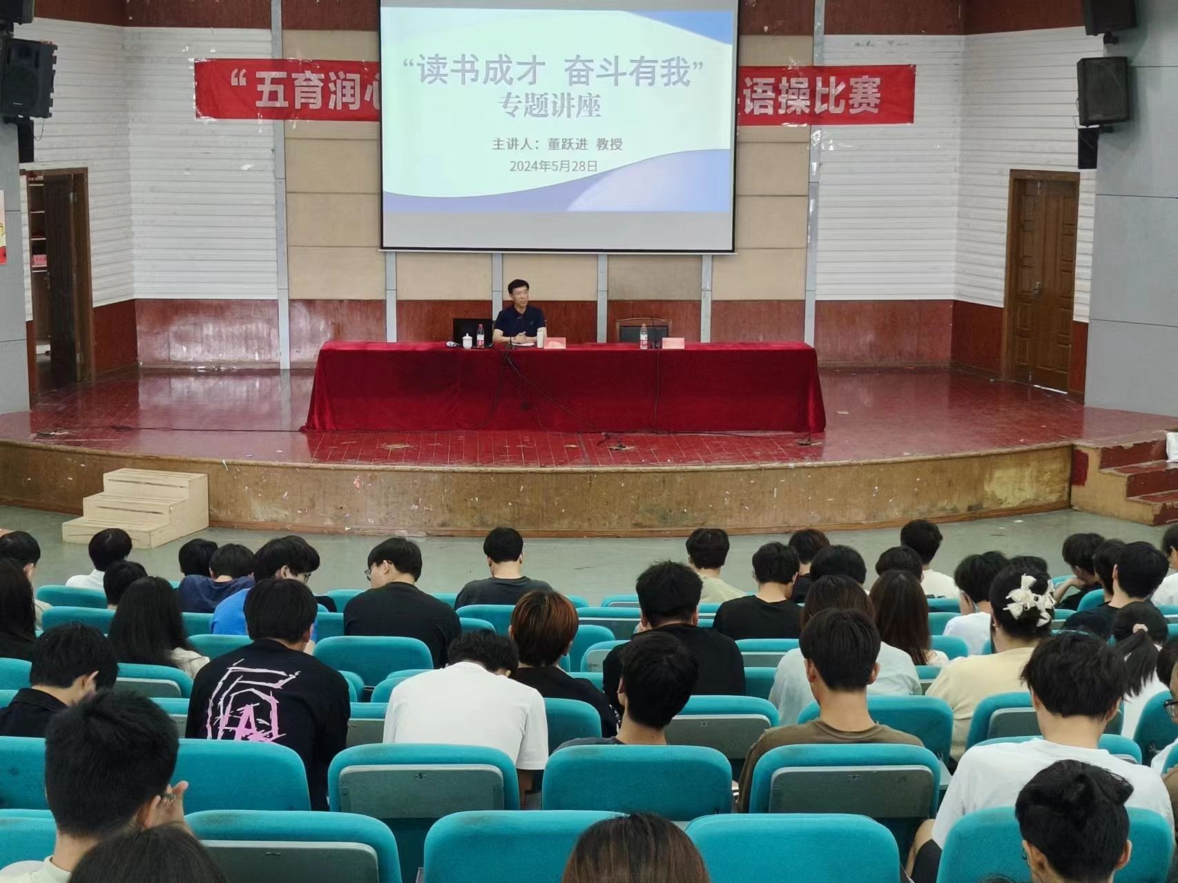 为贯彻落实立德树人根本任务,引导学生坚定理想信念,激励学生树立远大抱负,进一步落实推动关工委优质化建设工作,5月28日下午,材料学院邀请“银龄理论宣讲团”专家董跃进教授,在五四报告厅开展“读书成长 奋斗有我”专题讲座。讲座由学院党委书记唐浩主持,2023级辅导员及全体学生参加。