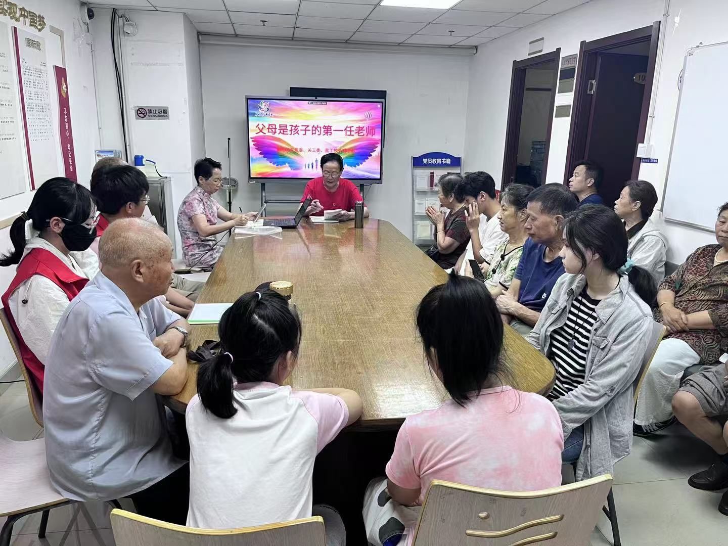 8月20月下午,我校“校外辅导站(朝阳社区)”联络人周瑞明受邀给朝阳社区20多名家长和学生做题为《父母是孩子的第一任老师》的讲座。