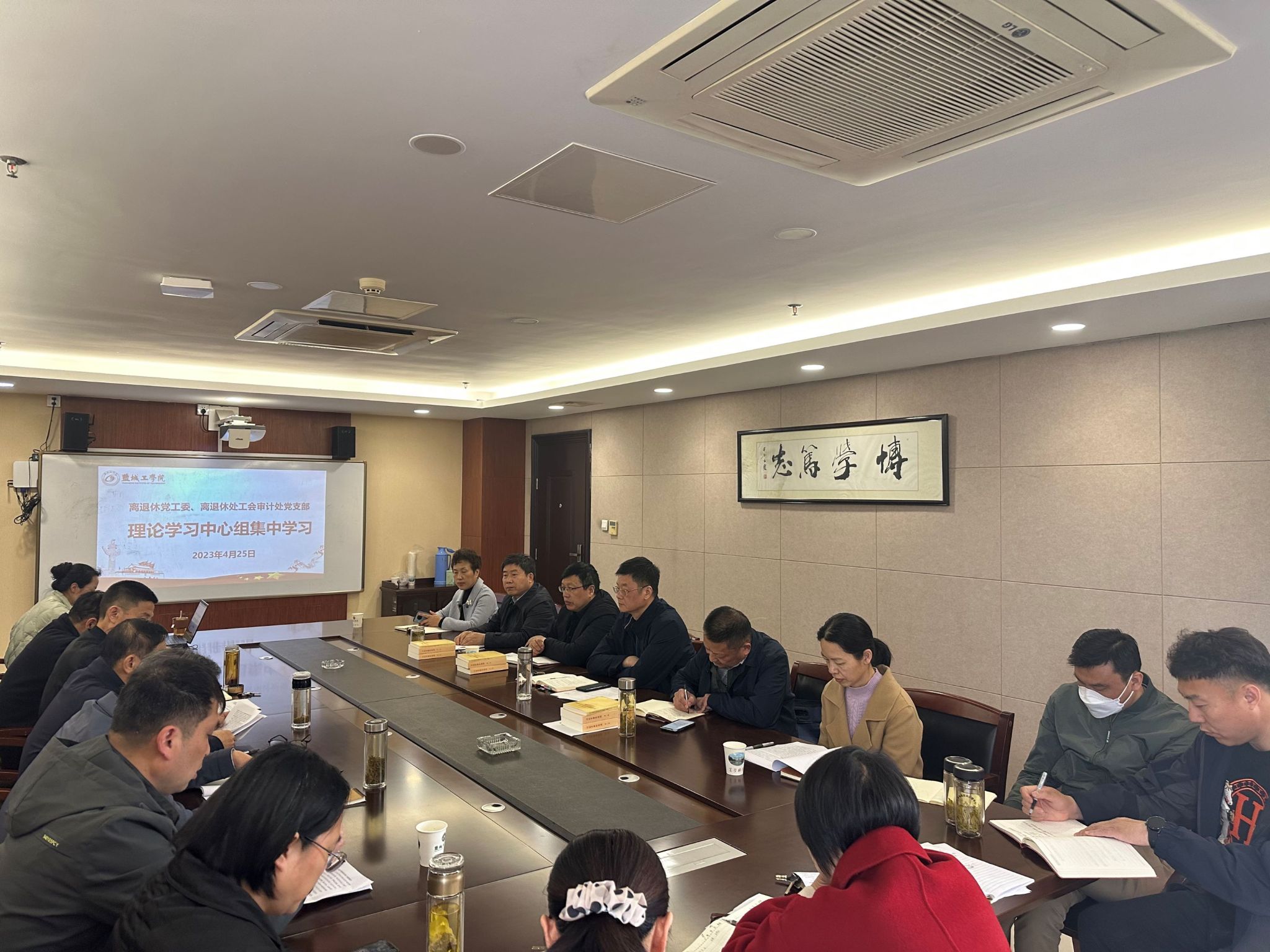 4月25日下午,离退休党工委,离退休处、工会、审计处党支部在行政楼428会议室召开学习贯彻习近平新时代中国特色社会主义思想教育动员暨理论中心组2023年4月份集体学习研讨会。会议由离退休党工委书记潘文东主持,全体离退休党工委委员,离退休处、工会、审计处全体职工参加学习。