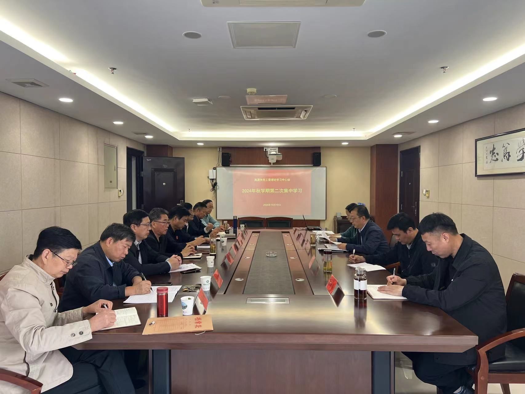 10月10日上午,在南校区行政办公楼428会议室,离退休党工委召开理论学习中心组2024秋学期第二次集中学习。原校党委常委、副校长宋长春等离退休党工委中心组成员,离退休工作处全体在职党员参加学习。会议由离退休党工委书记谷文华主持。