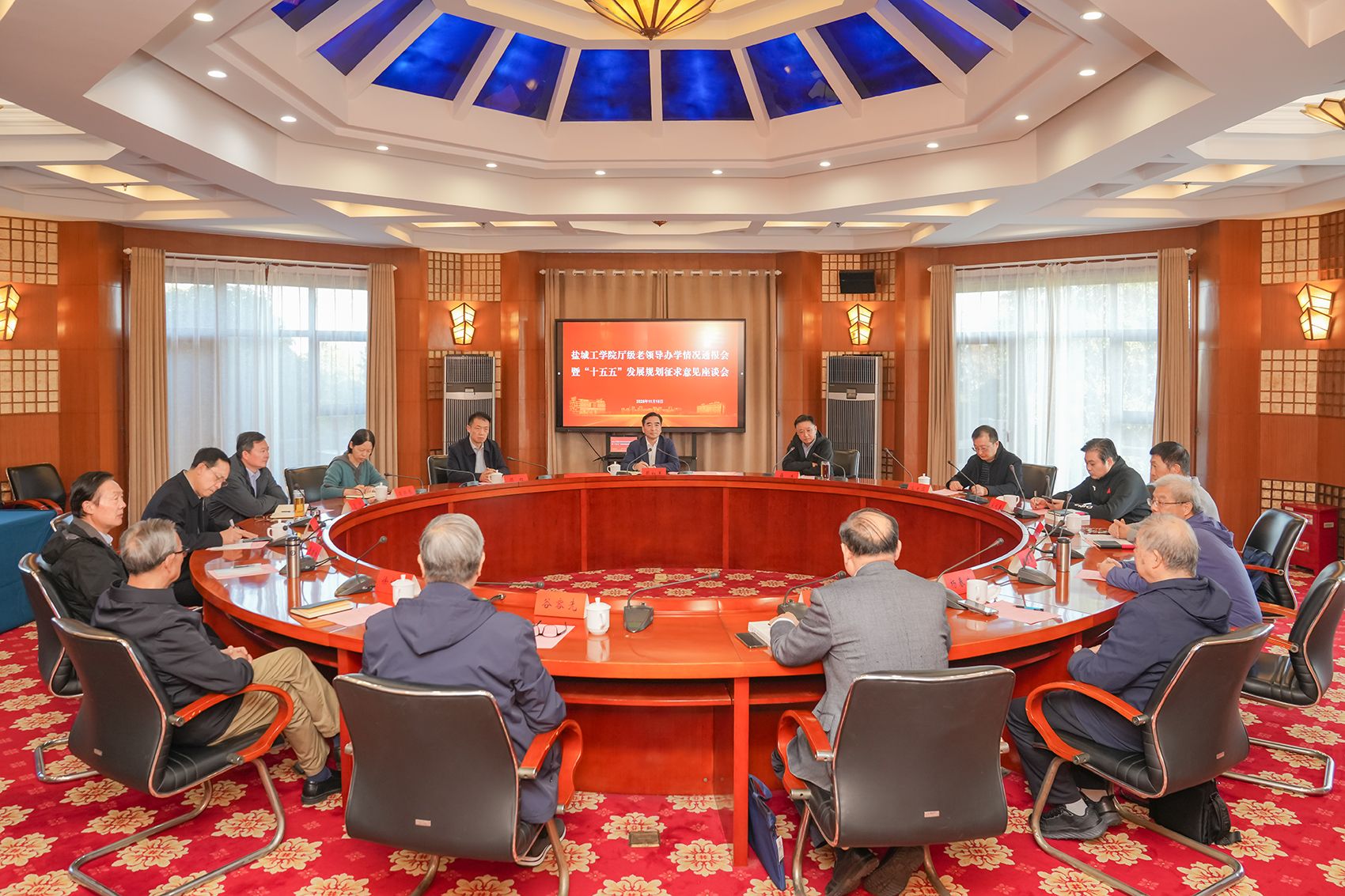 11月15日,校党委书记周如军专程赴无锡亲切看望参加读书研学活动的厅级老领导,并出席面向厅级老领导的“十五五”事业发展规划征求意见座谈会。座谈会由党委副书记薛浩主持,党委办公室主任顾红,离退休党委书记谷文华、副书记周晓琴参加。盐城市政协原主席、我校原党委书记冯永农,盐城市人大常委会原常务副主任、党组副书记(正厅级)、我校原校长谷容先,我校原党委书记杨春生,我校原党委副书记徐仁权,我校原党委常委、副校长陈金春,我校原党委副书记、副校长张建祥,我校原党委常委、副校长董跃进,我校原副厅级校领导顾强生,我校原党委常委、副校长宋长春,我校原党委常委、副校长崔刚等十多位厅级老领导参加座谈会。