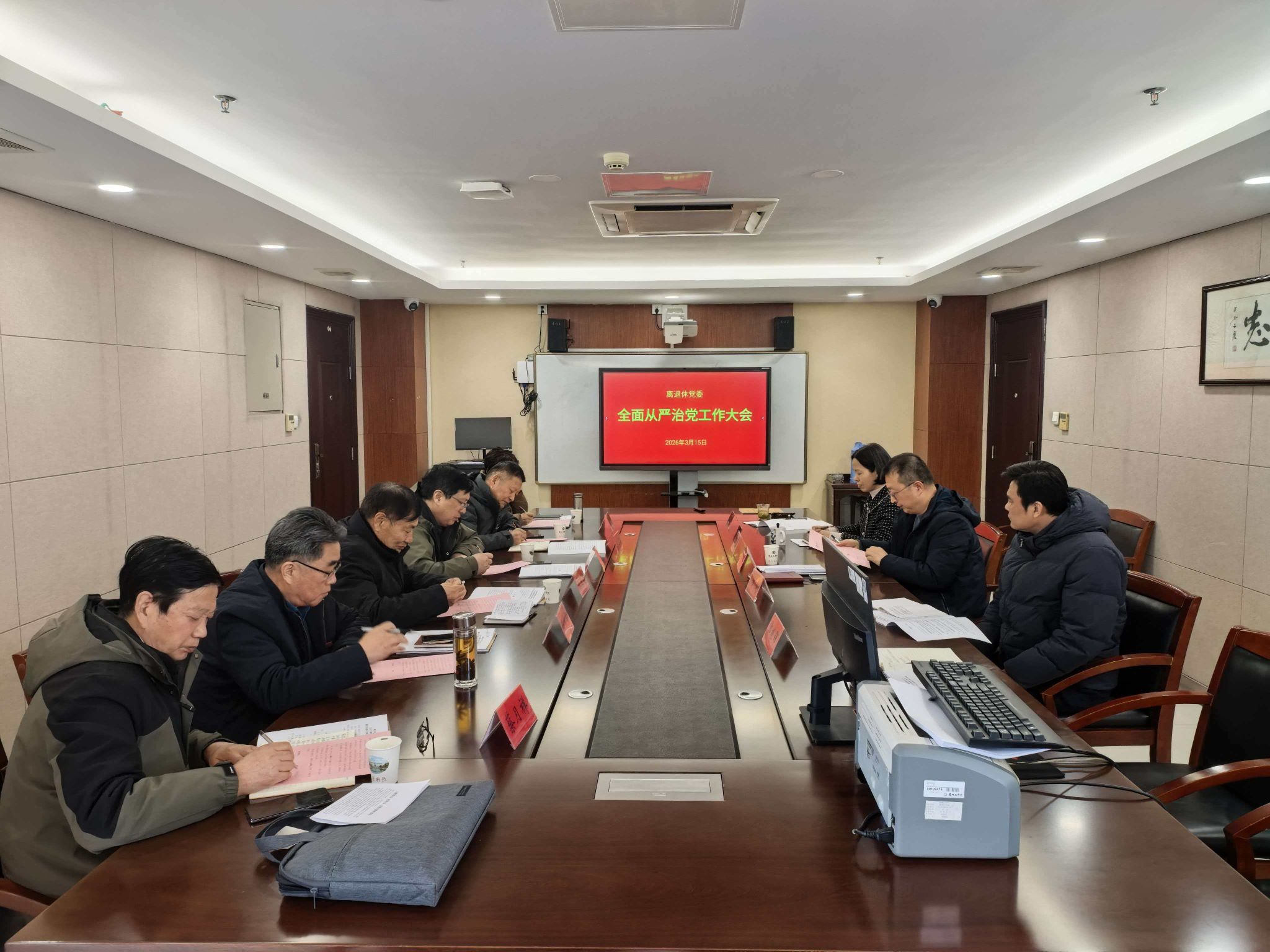 3月15日下午,离退休党委在行政楼428会议室召开2026年全面从严治党工作大会。离退休党委各支部书记、离退休工作处全体工作人员参会,离退休党委书记谷文华主持会议。